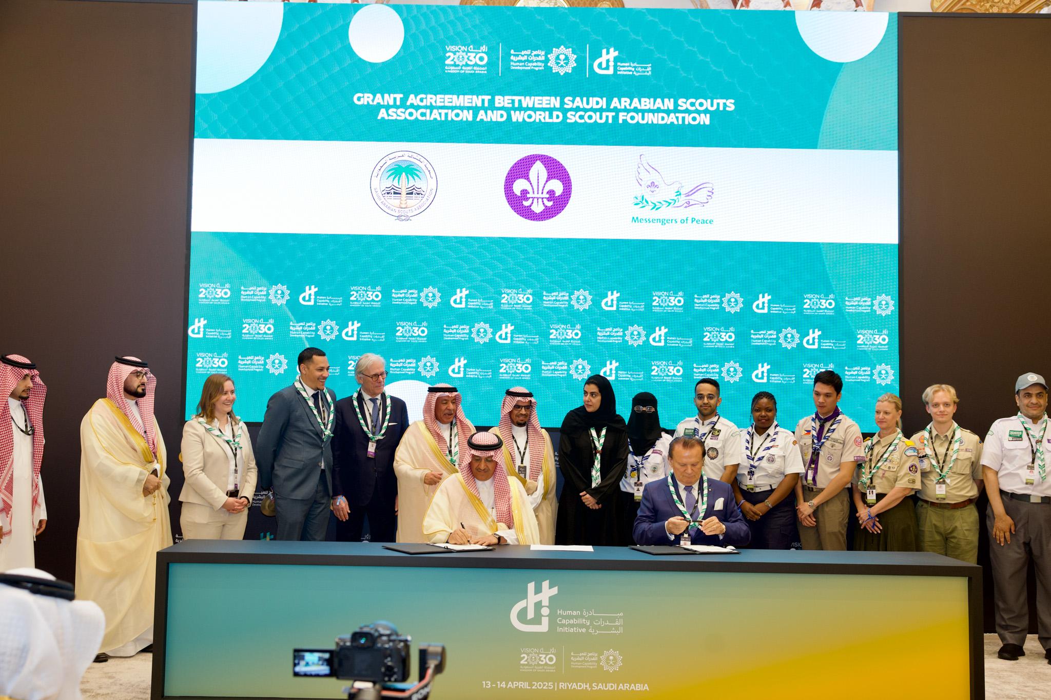 His Excellency, the Minister of Education and President of the Saudi Arabian Scout Association, Yousef bin Abdullah Al-Benyan, along with Mr. Siegfried Weiser, the Board Member and Chair of the Messengers of Peace Oversight the World Scout Federation, signed a $50 million funding renewal agreement from the Government of the Kingdom of Saudi Arabia for the next decade. This agreement aims to inspire and encourage over 100 million Scouts to act as Messengers of Peace in 176 countries. The agreement was signed on the sidelines of the Human Capabilities Initiative Conference.